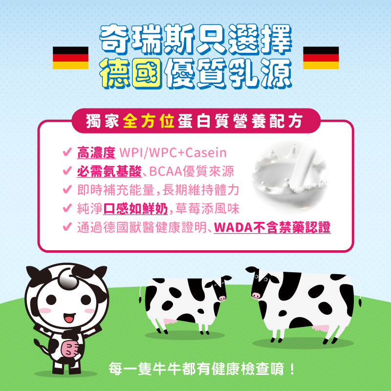 🔷 德國優質奶源,高濃度WPI/WPC+Casein,WADA不含禁藥認證